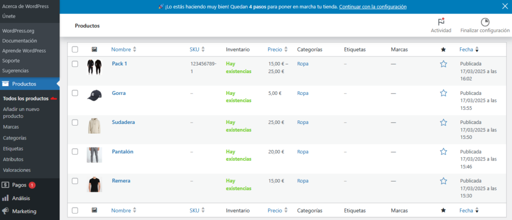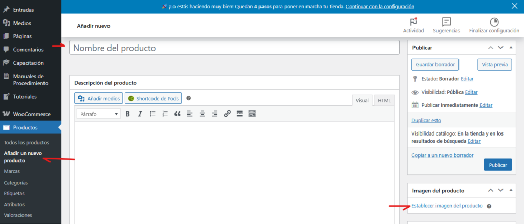 1. En el menú de WordPress, ve a Productos > Añadir nuevo.