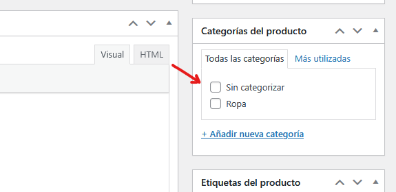 • Asigna el producto a una categoría y etiquetas si es necesario.
