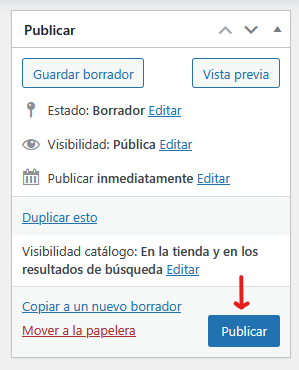 1. Haz clic en el botón Publicar para que el producto aparezca en tu tienda.